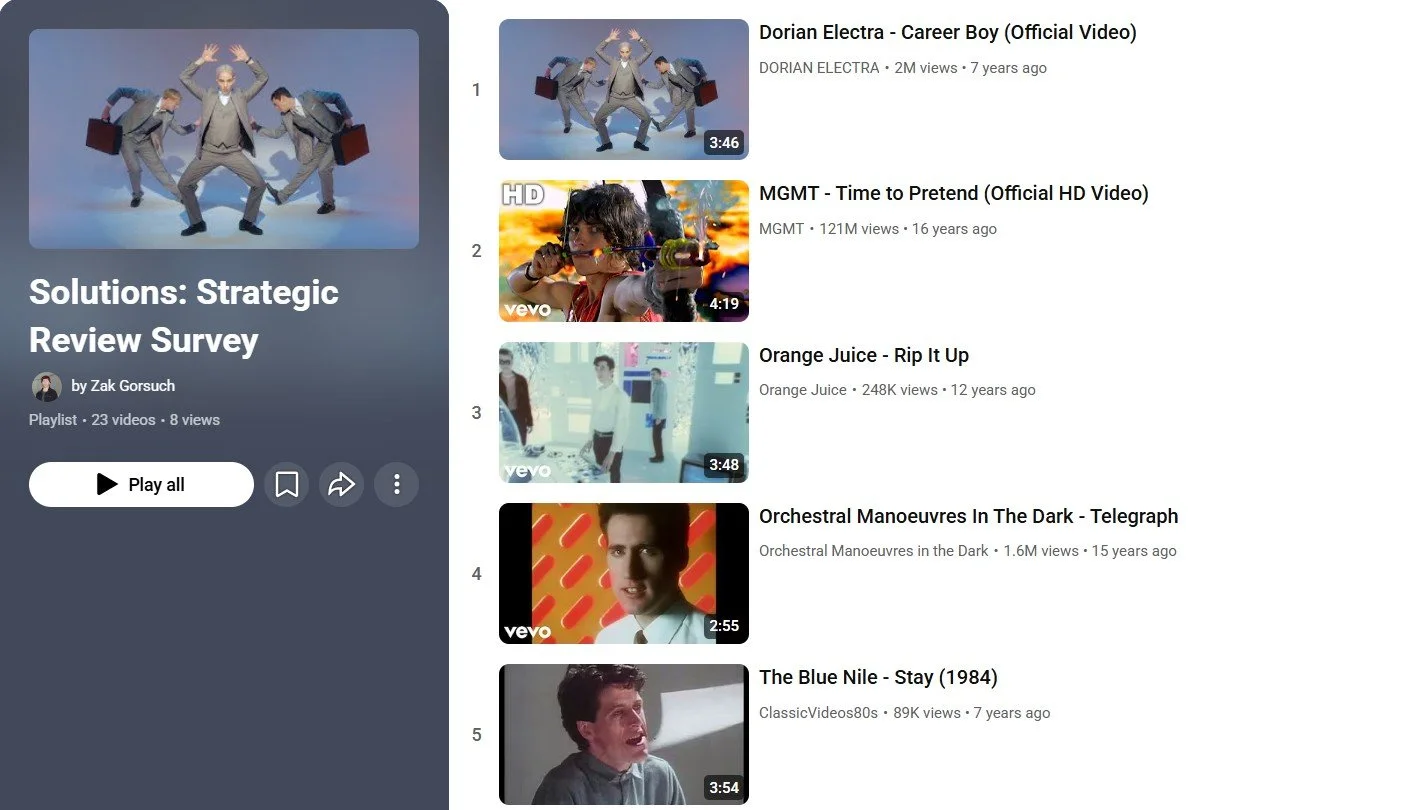 Solutions: Strategic Review Survey (a youtube playlist)